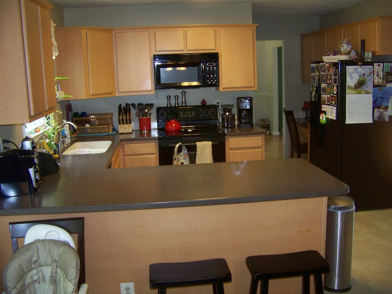 Annnnnd on to the kitchen, the center of the house. I love a lot of things about my new kitchen, but can I just say how much I ADORE these countertops. I do not miss the white, porous, show every knick and stain ones we left back at the Beach. These things are marvelous. And I'll let you in on a little secret about my cupboards and drawers, I have a few empty ones. Yeah, that's how much more space I have. Love it!!