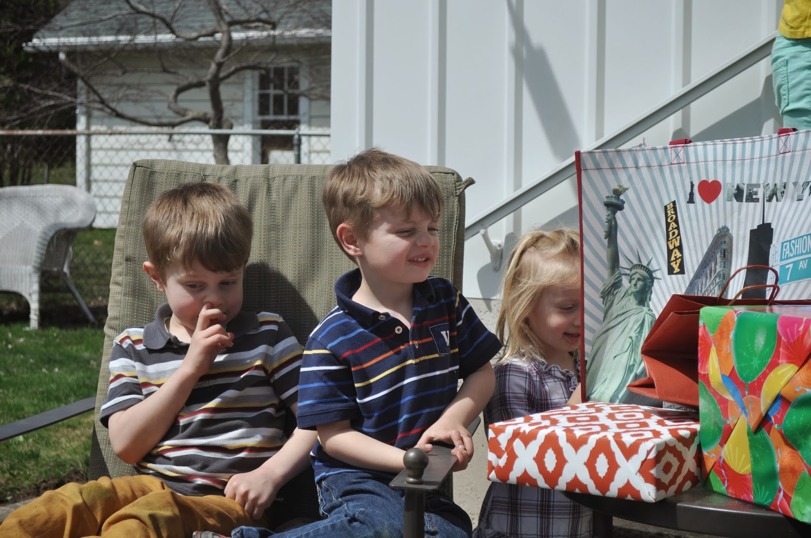 Or course, 4 years old has its challenges. We're working on honesty right now and taking responsibility for our actions. Lately, I'll find something amiss. The bathroom sink plugged and the water left running (for over an hour!) A 4-inch triangle carved into the top of my dining room table. Handfuls of mud flung onto the garage door. Or a puddle of pee on the floor. I'll ask, "Who did this?" Jack crosses his arms, closes his eyes, sticks out his bottom lip and says matter-of-factly, "It was Jude." Jude extends his neck, widens his eyes, jumps up and points, "It was Jack!"